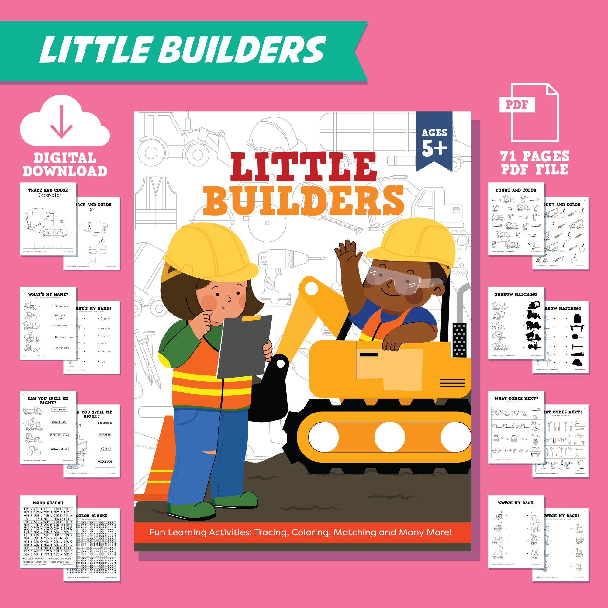 If you’re looking for a fun way to keep your child entertained, this activity book is the perfect choice! It’s filled with exciting activities such as coloring pages, tracing, matching games, word searches, and more that will keep your child engaged in learning and growing. With over a dozen construction-related vehicles and tools, your child will grasp the concept of construction in no time.